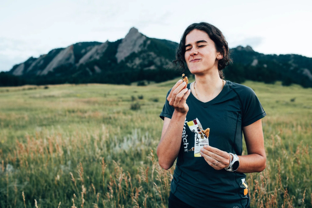 O greitai energijai kelyje man labiausiai padeda energetiniai batonėliai. Dažnai renkuosi juos, nes juos lengva nešiotis ir jie greitai papildo energiją, kad galėčiau toliau minti.